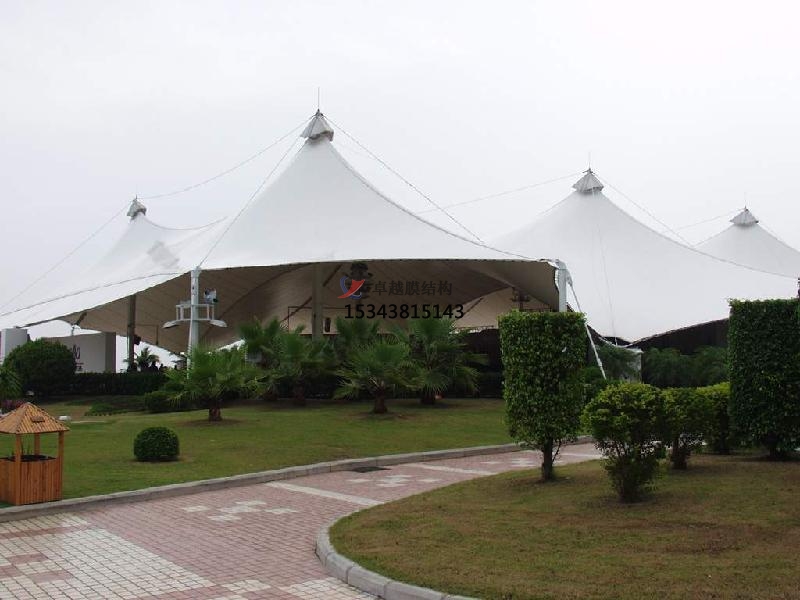 張拉膜景觀建筑從結(jié)構(gòu)上分可分為:骨架式張拉膜景觀、張拉膜景觀、充氣式張拉膜景觀3種形式。