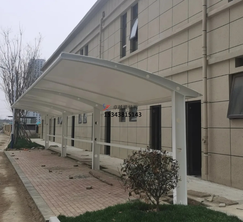 除了停車功能外,7字型膜結(jié)構(gòu)車棚的一側(cè)可以與建筑物相連,形成一個過渡空間。這個過渡空間可以有多種用途,比如作為行人的遮雨棚、自行車停放處,或者設(shè)置為休息區(qū)。這種多功能的設(shè)計,為人們的生活和使用帶來了更多的便利,提升了整個區(qū)域的實(shí)用性。