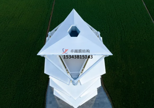 稻田上的燈塔的落成為當(dāng)?shù)氐泥l(xiāng)村提供了新的觀景點(diǎn)和社交聚集地。瞭望塔塔高23m,坐落于國家級現(xiàn)代農(nóng)業(yè)先行示范區(qū)高標(biāo)準(zhǔn)農(nóng)田的中心區(qū)域。它如同雕塑一般從稻田中螺旋升起,三角形元素和白色PTFE薄膜定義了其簡潔的設(shè)計(jì)語言,在鄉(xiāng)村大地上賦予了其強(qiáng)烈的存在感。