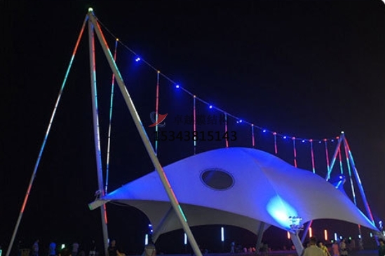 由于膜材具有一定的透光率白天可減少照明強(qiáng)度和時(shí)間能很好地節(jié)約能源,呈現(xiàn)富于變幻、新奇誘人的視覺效果。