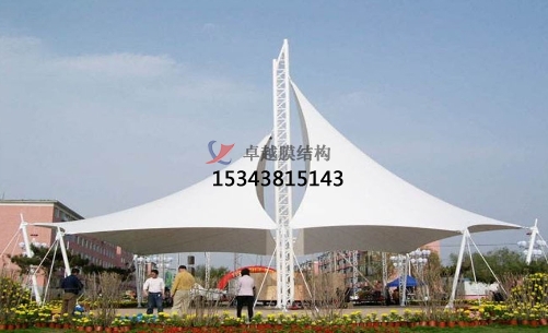 膜結(jié)構(gòu)景觀棚以其輕盈飄逸的造型、柔美并帶有力量的曲線和大跨度和大空間。