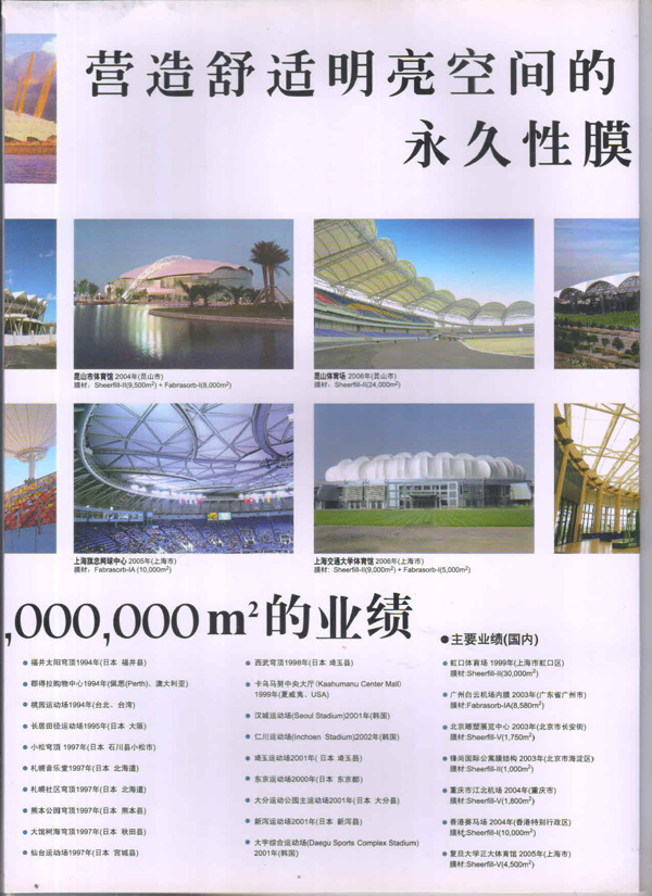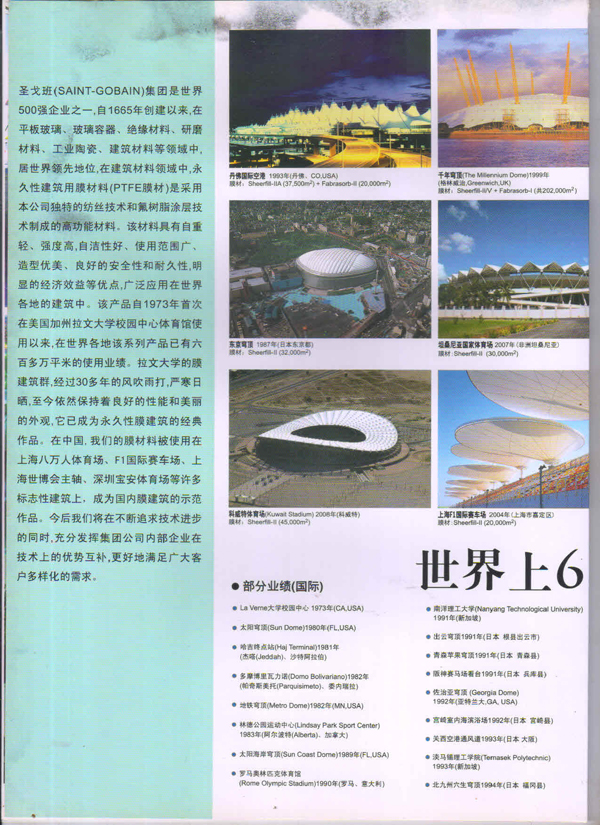 圣戈班工業(yè)薄膜為市場提供高性能聚合物薄膜、微孔過濾膜、薄膜圖層、復(fù)合薄膜和壓敏膠帶等多種產(chǎn)品近40多年,在相關(guān)行業(yè)中具有領(lǐng)先的地位。在諸多建筑中,我們都能看到圣戈班的影子,其中就有被很好的建筑師青睞的PTFE的建筑膜,實際上它就是圣戈班SHEERFILL®建筑網(wǎng)格布。